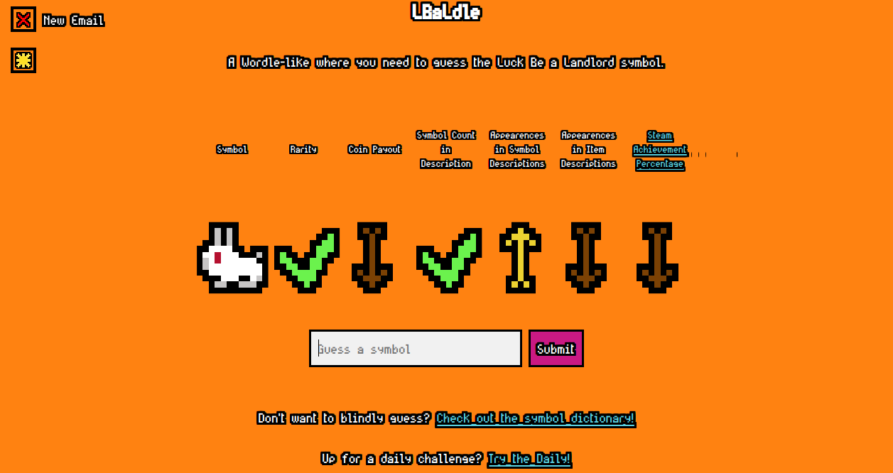 I've had a lot of fun with it and it has a daily challenge like most Wordle-likes. If you take part in the daily, feel free to post your result in the #lbaldle channel of the aforementioned discord.