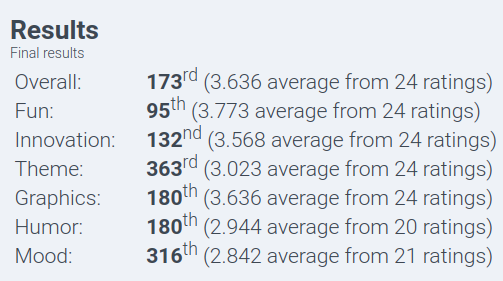 The ratings for the jam were recently released as well, and Plenty of Plants was just barely outside of the top third of compo entries. It also got into the top 100 in the Fun category, which felt great!