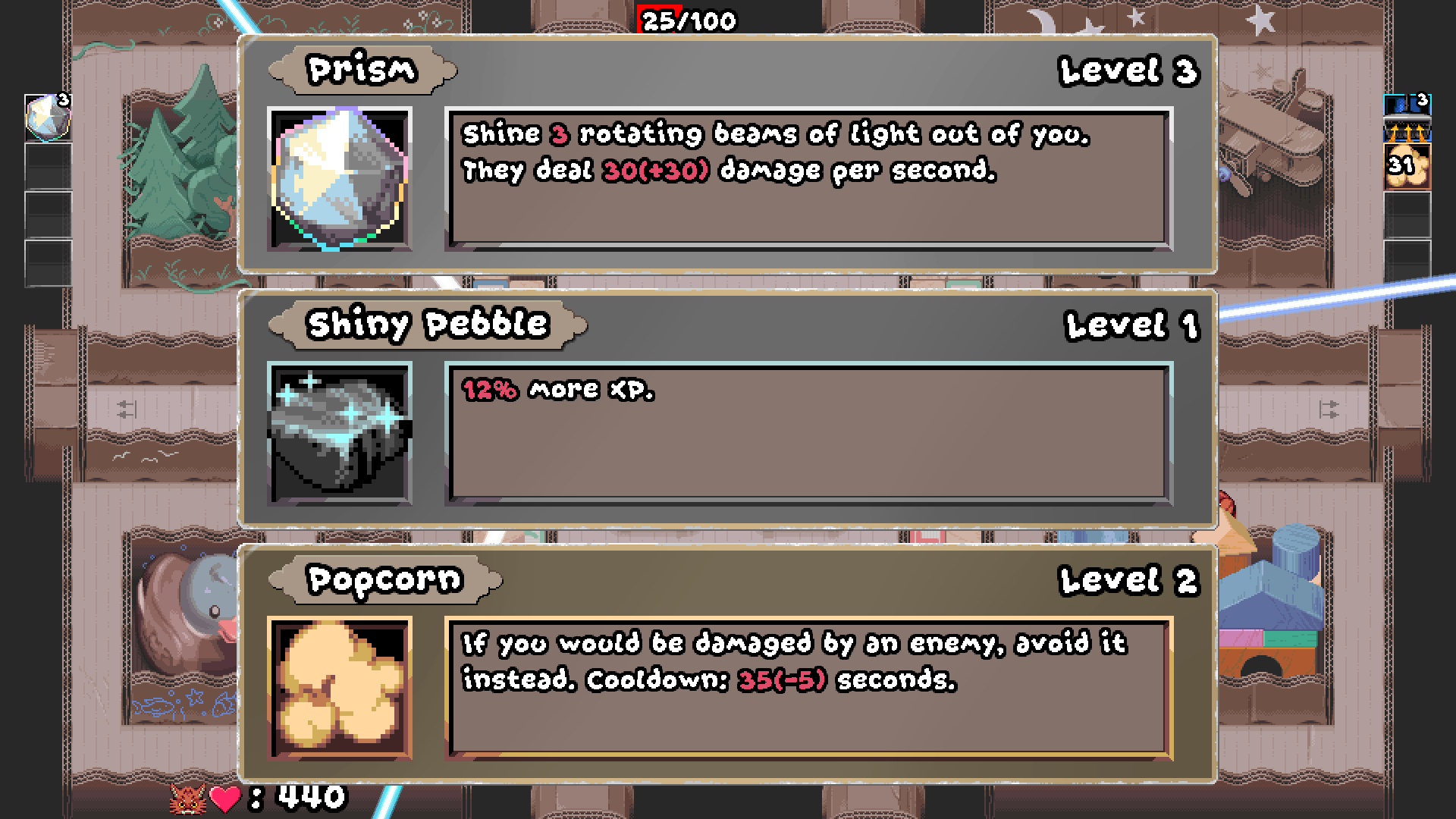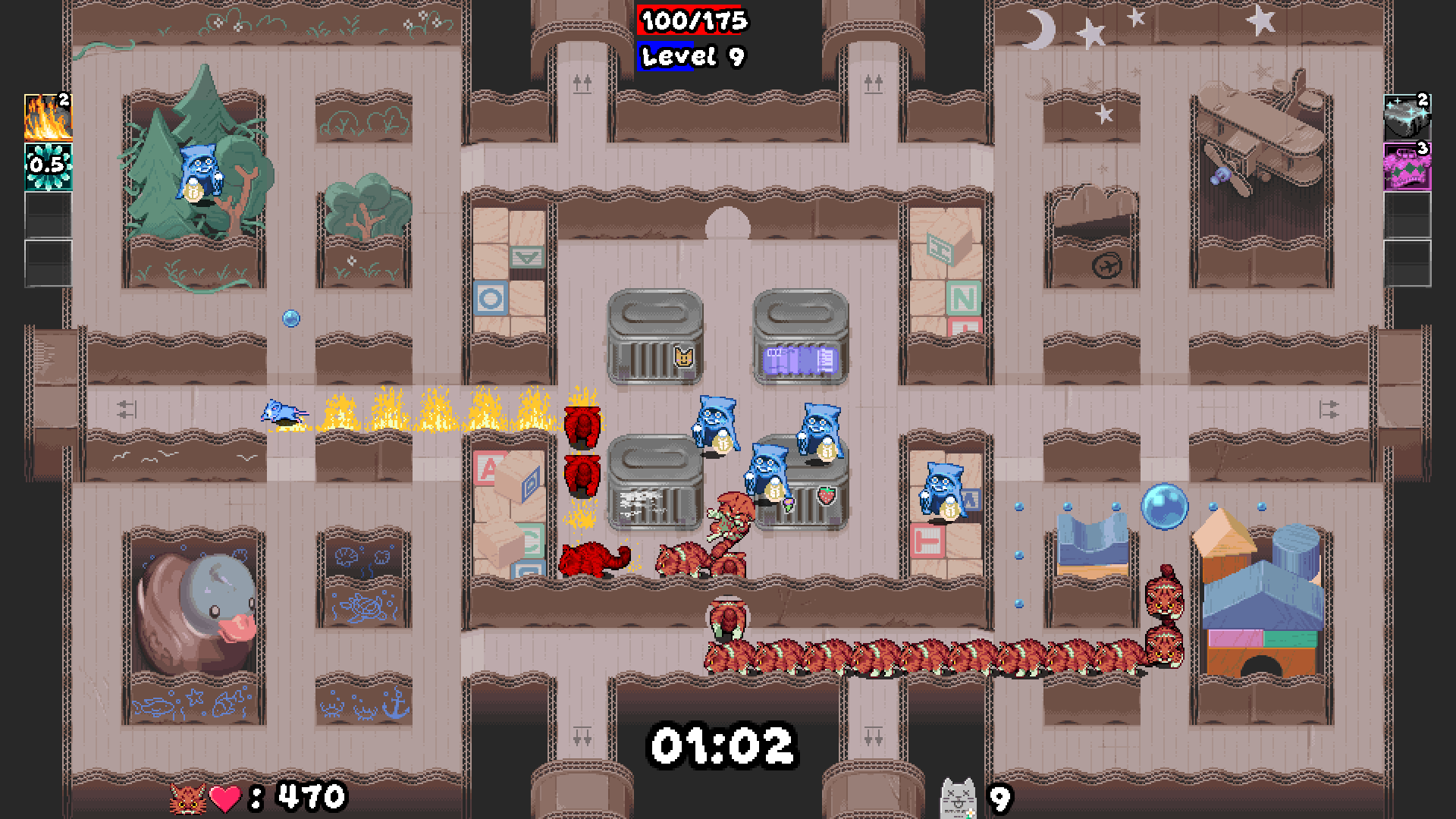 Maze Mice is a bullet heaven roguelite where time only moves when you move. Collect dots, level up, choose upgrades, and avoid cats. All at your own pace.
